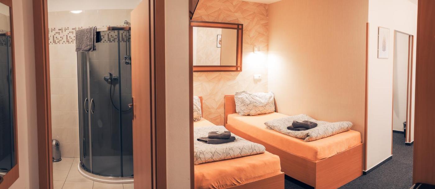 Quadruple Room. Providing free toiletries, this quadruple room includes a private bathroom with a shower. The quadruple room provides a wardrobe, a carpeted floor and heating. The unit offers 4 beds. ;