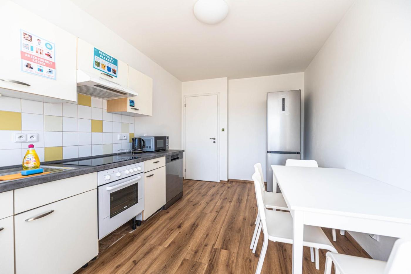 Four-Bedroom Loft Apartment. Boasting 4 bedrooms, this spacious apartment has 2 bathrooms with a shower, a seating area and terraceyou can relax. Guests can make meals in the kitchen that has a stovetop, a refrigerator, a dishwasher and kitchenware. The apartment offers a washing machine, a dining area, a wardrobe, as well as a balcony. The unit offers 8 beds. ;
