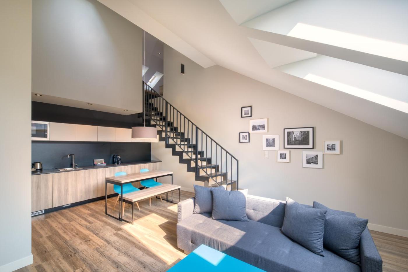 Duplex Suite. This suite comes with 1 living room, 1 separate bedroom and 1 bathroom with a walk-in shower and free toiletries. The air-conditioned suite features a flat-screen TV with cable channels, soundproof walls, a tea and coffee maker, a seating area as well as ancourtyard view. The unit has 2 beds. ;
